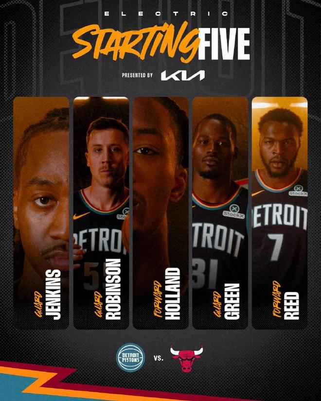 活塞过去7场比赛豪取7连胜高居东部第一,公牛过去3场连输雄鹿、骑士与马刺遭遇3连败。本场公牛缺少吉迪、怀特与科林斯,活塞缺少坎宁安、杜伦、艾维、奥萨尔、萨瑟与哈里斯。首节开局邓罗连续三分命中,引领活塞率先取得16-4领先优势,活塞之后继续维持21-9领先优势。公牛有所反扑,但活塞多点开花维持两位数领先优势,首节结束活塞35-23领先公牛。活塞首节24中12,其中三分12中7,邓罗4记三分12分,公牛23中9不足4成准星,其中三分11中4。