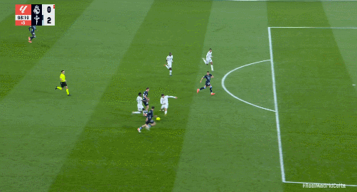 67’皇马前场连续围攻,最后以琼阿梅尼解围式远射收尾;